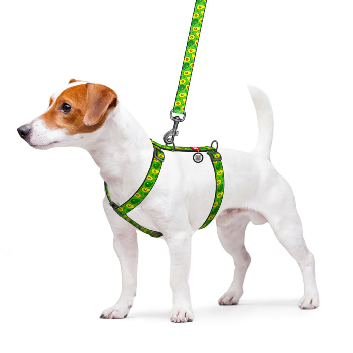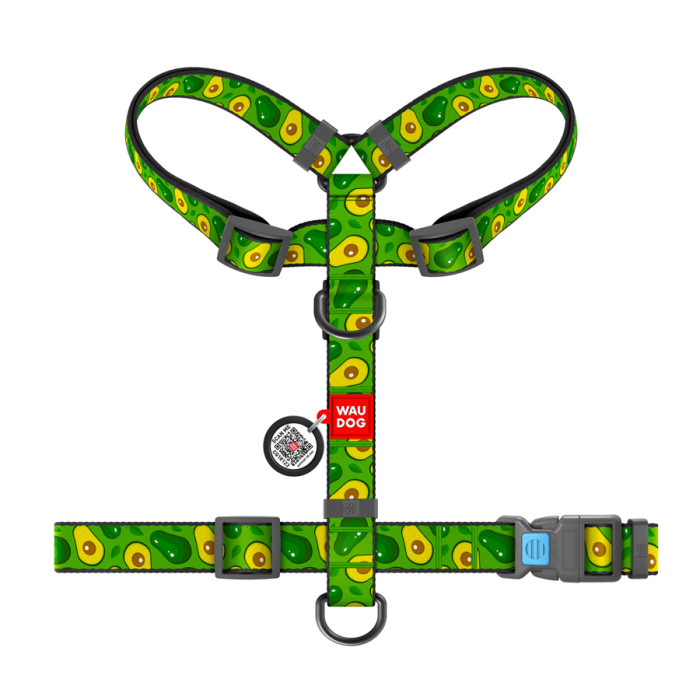 Шлея для собак анатомічна H-подібна WAUDOG Nylon з QR-паспортом, малюнок "Авокадо", пластиковий фастекс, L, Ш 25 мм, А 50-90, В 60-100