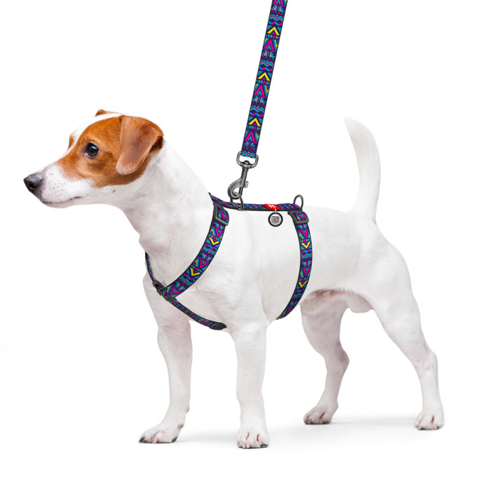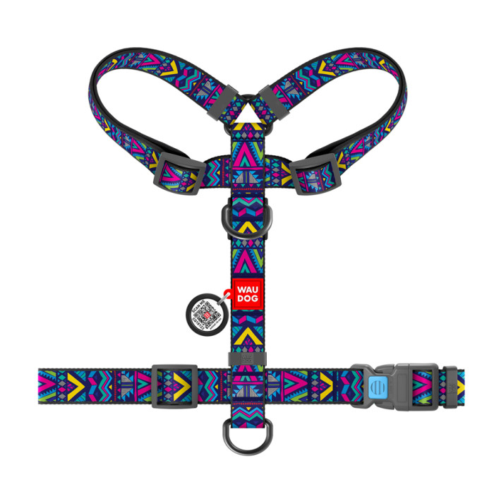 Шлея для собак анатомічна H-подібна WAUDOG Nylon з QR-паспортом, малюнок "Інді", пластиковий фастекс, L, Ш 25 мм, А 50-90, В 60-100