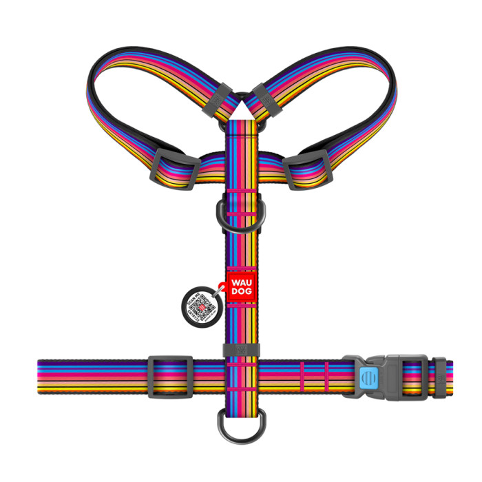 Шлея для собак анатомічна H-подібна WAUDOG Nylon з QR-паспортом, малюнок "Лінія 1", пластиковий фастекс, L, Ш 25 мм, А 50-90, В 60-100