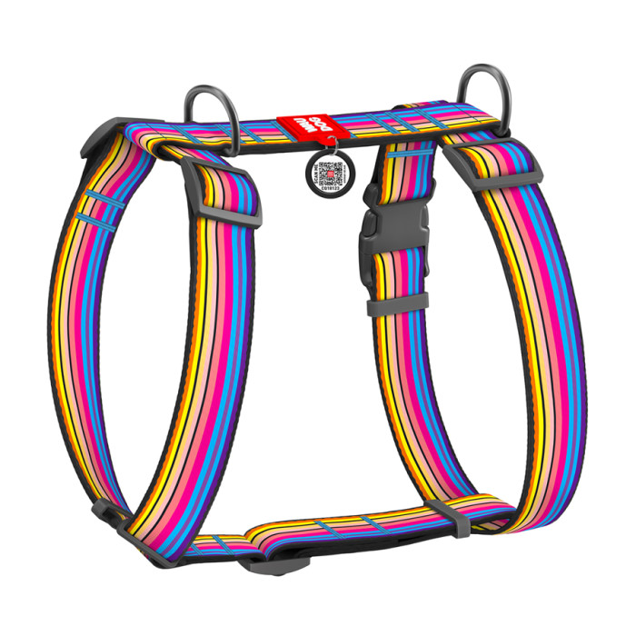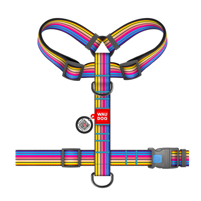 Шлея для собак анатомічна H-подібна WAUDOG Nylon з QR-паспортом, малюнок "Лінія 1", пластиковий фастекс, XL, Ш 35 мм, А 55-95 см, В 70-110 см
