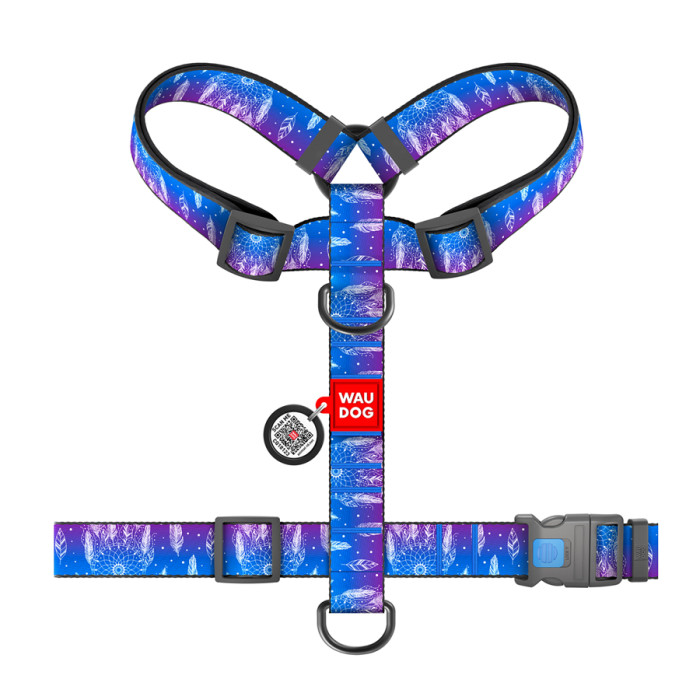 Шлея для собак анатомічна H-подібна WAUDOG Nylon з QR-паспортом, малюнок "Ловець снів", пластиковий фастекс, XL, Ш 35 мм, А 55-95 см, В 70-110 см