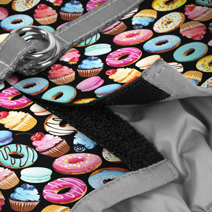 Шлея для собак м'яка WAUDOG Clothes з QR паспортом, малюнок "Пончики", XS1, В 24-27 см, С 18-20 см