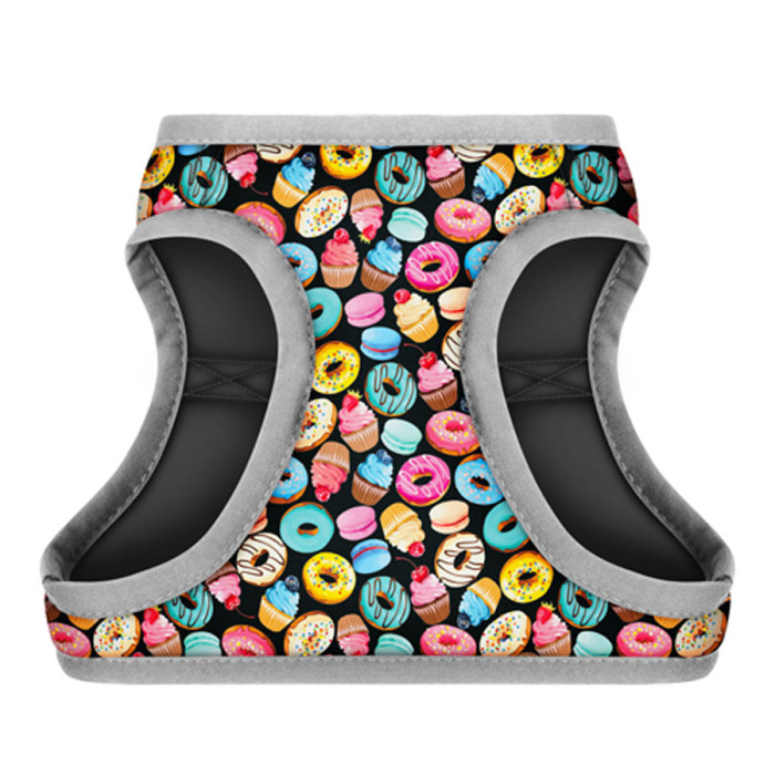Шлея для собак м'яка WAUDOG Clothes з QR паспортом, малюнок "Пончики", XS2, В 28-31 см, С 20-22 см