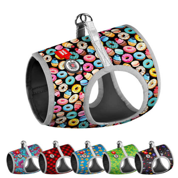 Шлея для собак м'яка WAUDOG Clothes з QR паспортом, малюнок "Пончики", XS4,В 36-39 см, С 26-28 см