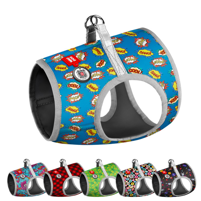 Шлея для собак м'яка WAUDOG Clothes з QR паспортом, малюнок "ВАУ", S1, В 40-45 см, С 29-31 см