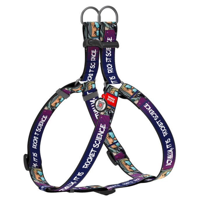 Шлея для собак нейлонова WAUDOG Nylon з QR-паспортом, малюнок "Космос. Ракетобудування", пластиковий фастекс, M, Ш 20 мм, Д 50-80 см