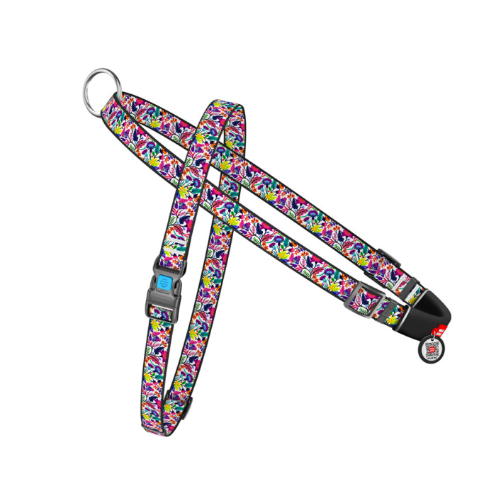 Шлея для собак швидкознімна WAUDOG Nylon з QR паспортом, малюнок "Чарівні квіти", пластиковий фастекс, Ш 25 мм, А 60-80 см, В 70-100 см