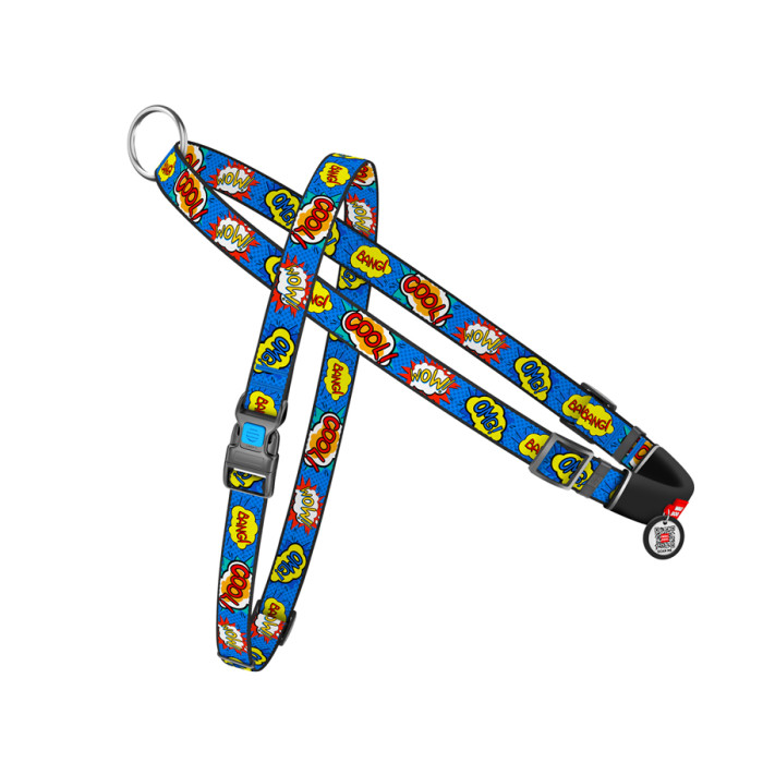 Шлея для собак швидкознімна WAUDOG Nylon з QR паспортом, малюнок "ВАУ", пластиковий фастекс, Ш 15 мм, А 40-55 см, В 45-60 см