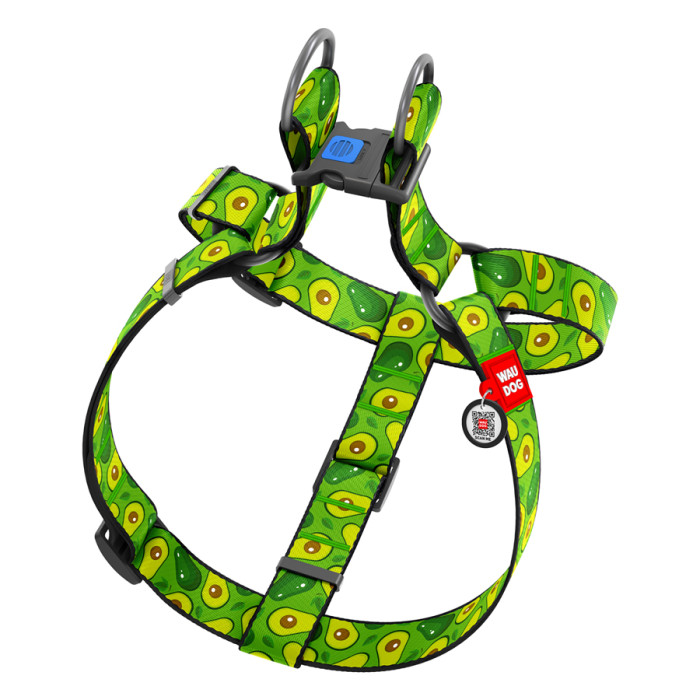 Шлея для собак WAUDOG Nylon з QR паспортом, малюнок "Авокадо", пластиковий фастекс, XL, Ш 35 мм, А=В 70-100 см