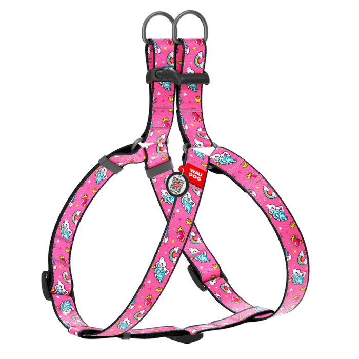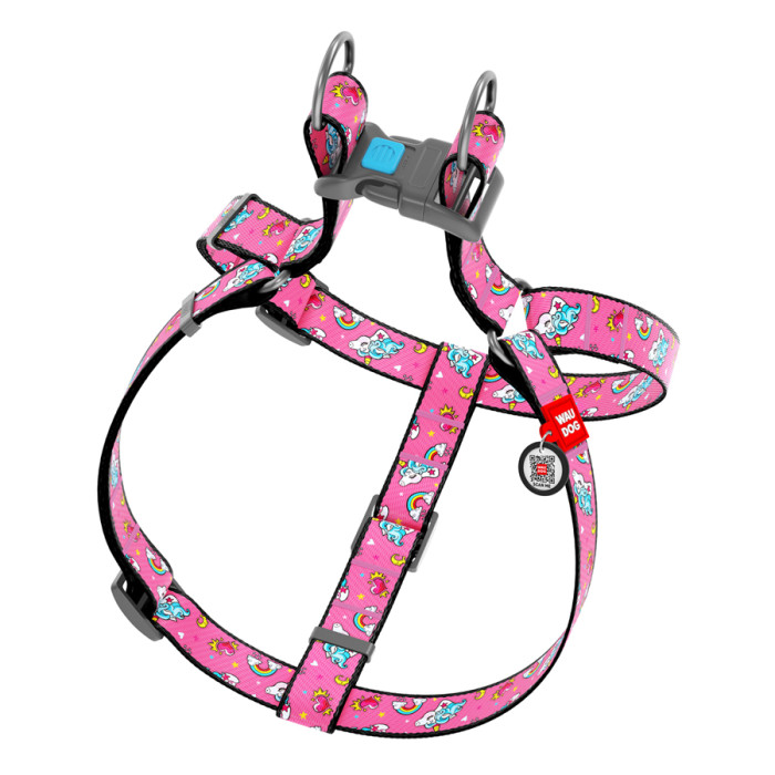Шлея для собак WAUDOG Nylon з QR паспортом, малюнок "Єдинороги", пластиковий фастекс, Ш 20 мм, Дов 50-80 см