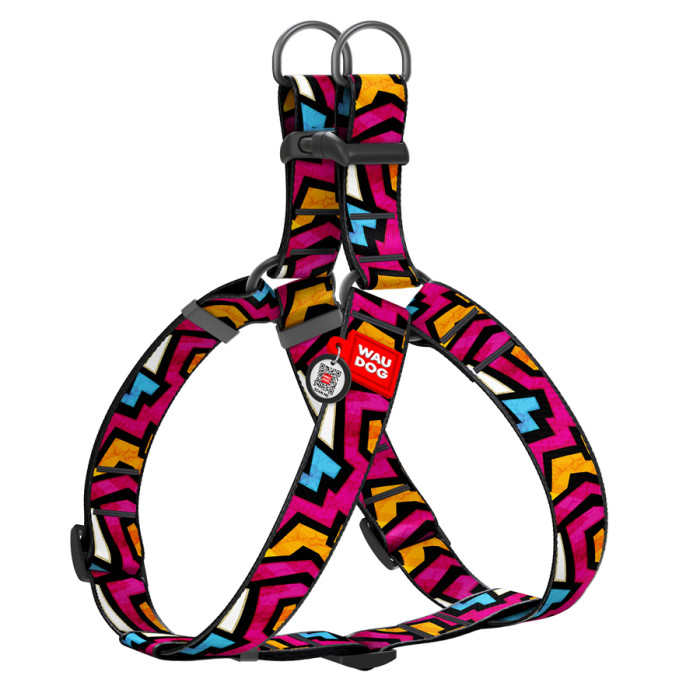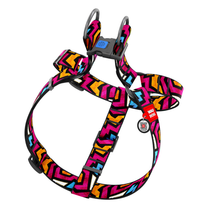 Шлея для собак WAUDOG Nylon з QR паспортом, малюнок "Графіті", пластиковий фастекс, XL, Ш 35 мм, А=В 70-100 см