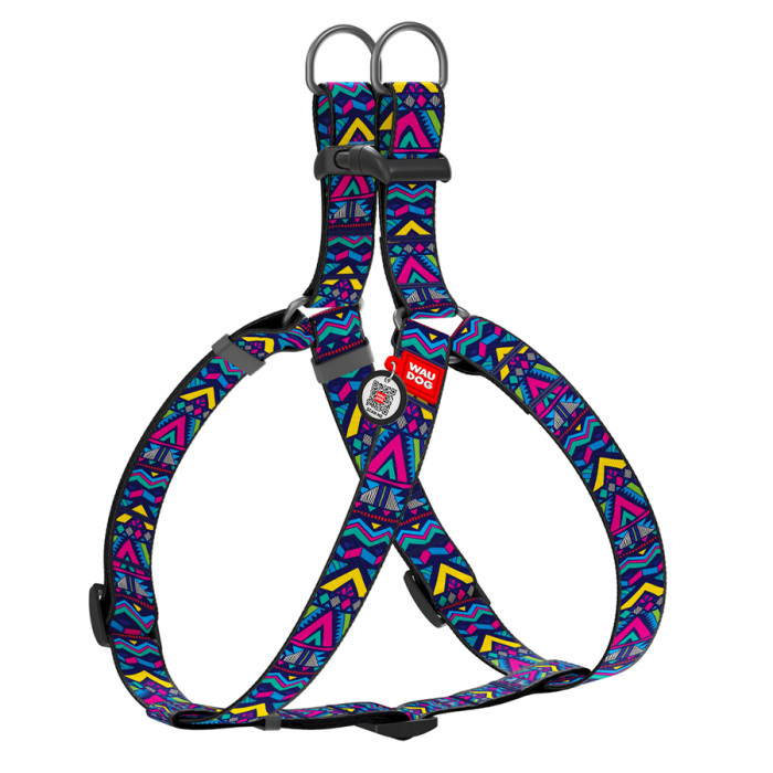 Шлея для собак WAUDOG Nylon з QR паспортом, малюнок "Інді", пластиковий фастекс, Ш 15 мм, Дов 40-55 см