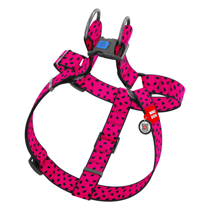 Шлея для собак WAUDOG Nylon з QR паспортом, малюнок "Кавун", пластиковий фастекс, XL, Ш 35 мм, А=В 70-100 см