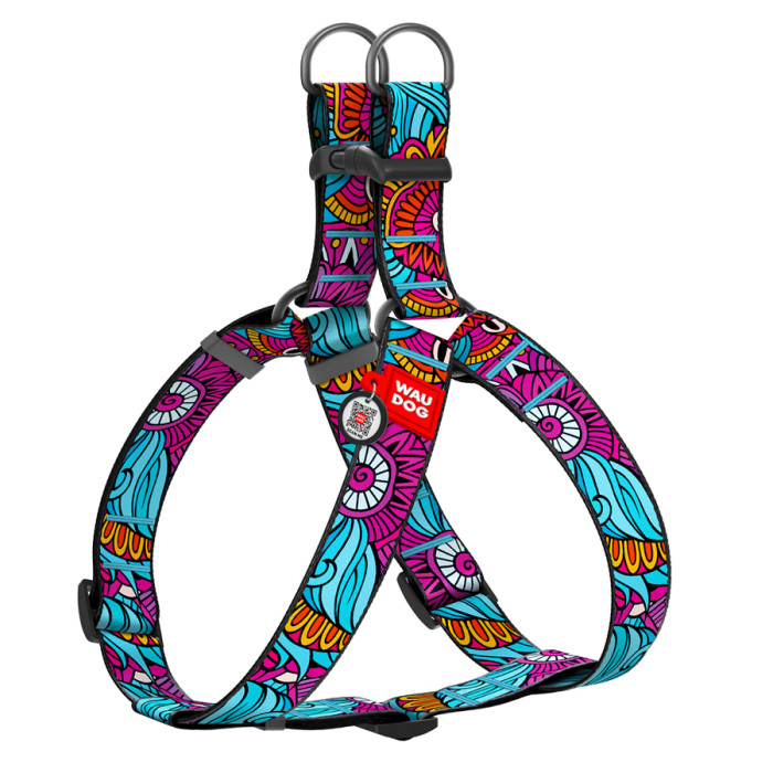 Шлея для собак WAUDOG Nylon з QR паспортом, малюнок "Літо", пластиковий фастекс, XL, Ш 35 мм, А=В 70-100 см