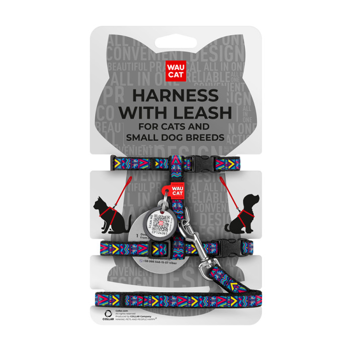 Шлея з повідцем WAUDOG Nylon з QR паспортом, малюнок "Інді", пластиковий фастекс, Ш 10 мм, В 25-40 см, С 20-30 см