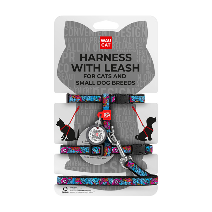 Шлея з повідцем WAUDOG Nylon з QR паспортом, малюнок "Літо", пластиковий фастекс, Ш 10 мм, В 25-40 см, С 20-30 см
